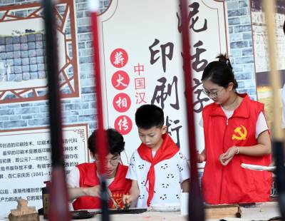 暑假以来,英山县文旅局开展“携手守护历史 志愿传递文明”活动,让孩子们走进毕昇纪念馆,了解毕昇文化,让家乡的文化传承“印”进孩子们心田。图为8月12日活动场景。