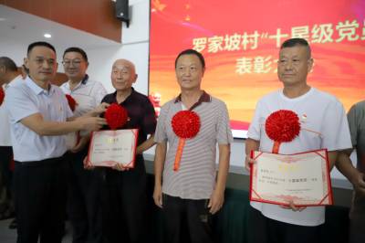 8月13日,湖北省竹山县麻家渡镇罗家坡村召开2024年“十星级党员”表彰大会,以“十星”评星树模为乡村振兴添动力,用“十星”之火点亮乡村文明之光。活动现场,镇党委相关领导和县教育局驻村第一书记联合村委干部为罗玮、罗晶晶等23名“十星级党员”佩戴大红花,并为获评“十星级党员”上门入户授牌挂牌。