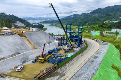 连日来,位于三峡库区宜昌市夷陵区太平溪镇境内的南水北调引江补汉工程龙潭溪取水口区域,建设现场设备轰鸣,挖掘机、凿岩台车正在加紧施工,呈现热火朝天的繁忙施工景象。