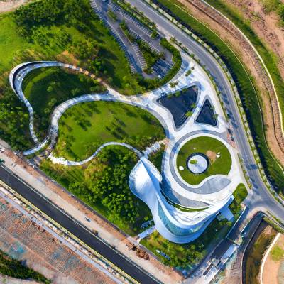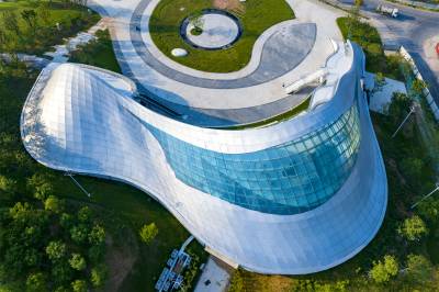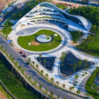 宜昌高铁新城是宜昌市推进城市北拓、加快城市和产业“双集中”发展的重点项目。其中,城市展厅总面积5500多平方米,一层为综合服务区、二三层为展示区,楼顶为观光区。展厅背靠高铁宜昌北站,呈现“半月”形态,与自然环境融为一体,是宜昌高铁新城对外展示交流的窗口。(视界网 张国荣 望作信 摄)