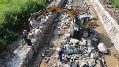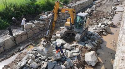 2024年8月21日,十堰市房县军店镇三溪沟村河道治理防洪工程进入收尾阶段,由混凝土与块石加固的河堤防洪标准提高到20年一遇。