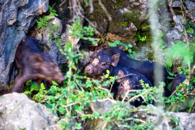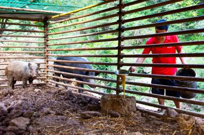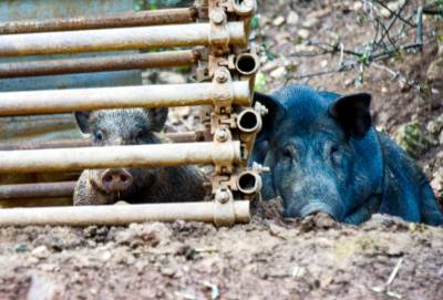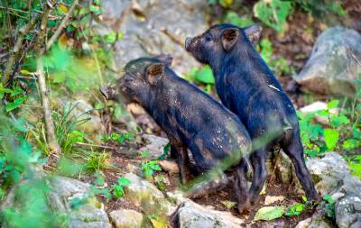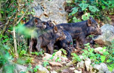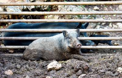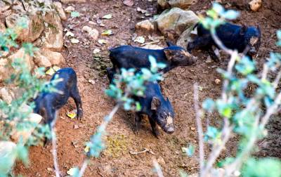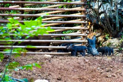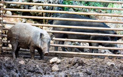 2024年8月21日,十堰市郧阳区谭家湾镇龙泉寺村村民小彭家养了一头母野猪喜添6个娃。据小彭介绍,去年7月自家苞谷地的苞谷开始灌浆,野猪成群结队下地毁苞谷,小彭在苞谷地边下钢丝套第二天一看套上一头小野猪他抱回来用钢管搭建了一个特制猪圈单养这头野猪。今春这头母野猪发情后与当地黑公家猪杂交,这个月初母野猪产下6个娃后,黑公猪一直守在母野猪和6个黑野楮娃旁,一家子其乐融融。但6头小猪野性十足,人根本靠不到跟前,一见人就往山上跑,只能远一点抓拍。小彭计划把当地人喜爱的黑猪与野猪杂交后的第一代黑野猪养大后扩大养殖规模向外推广,带动山区村民们一起养黑野猪增收。