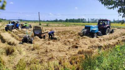 8月24日,热浪滚滚。京山南片农机服务专业合作社的社员无惧高温,投入4台打捆机和多台收割机,在永漋镇的古城口村和石女山村中稻田里展开了紧张的作业。