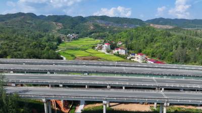 2024年8月25日,十堰市房县军店镇小峪村境内高速公路通达全境,乡村公路连通光伏发电、种植产业基地。