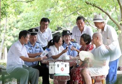 2024年9月2日,湖北省荆门市公安局漳河新区分局漳河水陆派出所社区民警和医护人员在宏图社区,为退休老教师开展健康义诊和普法宣传志愿服务。 宏图社区60岁以上的老人有1509位,占居住人口50%。在夏季治安打击整治行动中,漳河水陆派出所组织社区民警开展“幸福银龄” 普法行活动,向社区老人群体开展禁毒反诈宣传、调解邻里纠纷、关心孤寡老人等服务,为老年人安享幸福晚年营造了良好的社会环境。通讯员 赵平 程旭 摄
