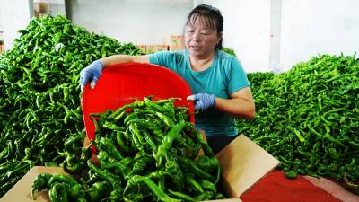 在杨家桥村高山无公害辣椒基地,放眼望去,一株株辣椒树郁郁葱葱、长势旺盛,一颗颗诱人的辣椒垂挂枝头,甚是喜人,满载着大山的恩赐与富饶。
