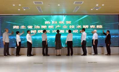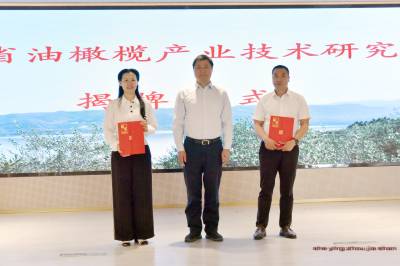 2024年9月24日,湖北省油橄榄产业技术研究院在湖北省十堰市郧阳区橄榄小镇揭牌。湖北省油橄榄产业技术研究院是由武汉轻工大学、十堰绿鑫林业发展有限公司、湖北鑫榄源油橄榄科技有限公司发起成立的省级产业创新平台,运用现代生物技术,服务油橄榄种苗繁育、种植、精深加工、副产物研究及高质利用等全系产业链发展。郧阳区在山疙瘩上种植油橄榄6.2万亩,规模全国第三、全省第一,带动全区1.2万村民户均增收3万元,组织市场主体联合成立了以“九统一”为目标的产业联盟。