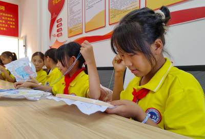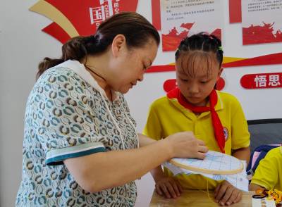 (通讯员王恕森、闫中萍)9月24日,宣恩县沙道沟镇中心小学刺绣社团学生在老师的指导下神情专注的绣着卡通人物。