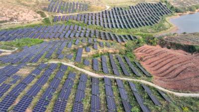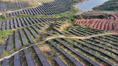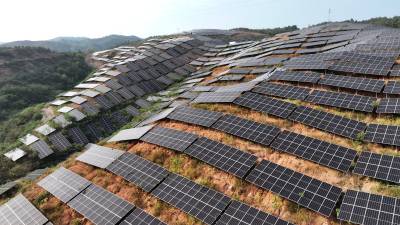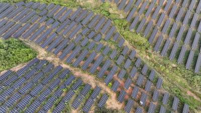 2024年10月8日,航拍十堰市房县军店镇军马村清洁光伏发电基地。