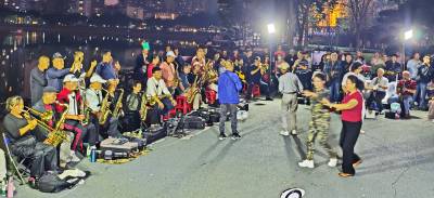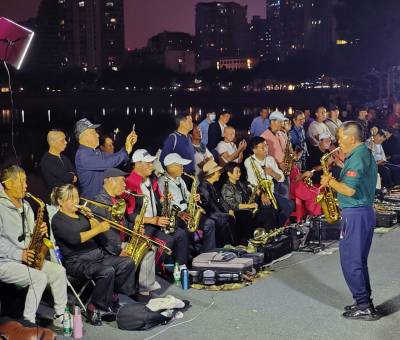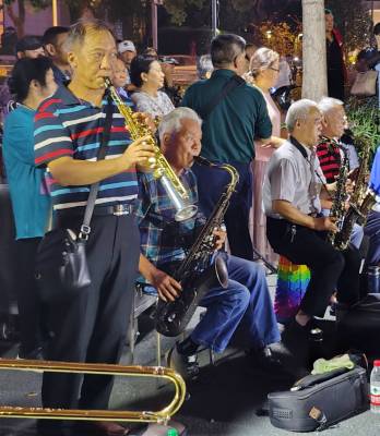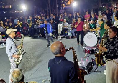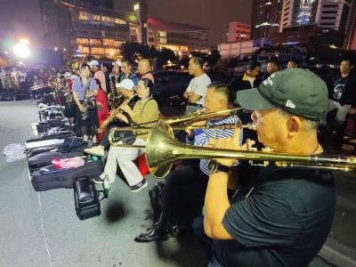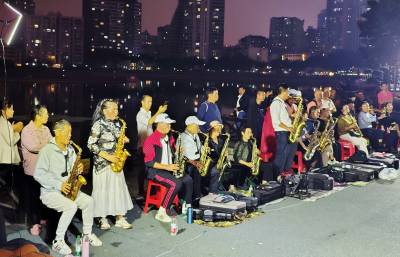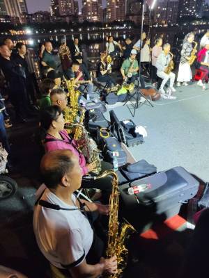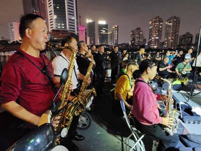10月16日晚,在武汉市江汉区新华路与建设大道交汇处的喷泉公园,居住在武汉三镇50余名70岁左右的老年人和居民,他们因酷热管弦乐欢聚一堂,展现交流提高各自的吹奏管弦乐的才艺,共同吹奏响美好幸福晚年生活,他们多次在此用优美动听耳熟能详的《鲜红的党旗高高飘扬》、《春天的故事》、《我和我的祖国》、《军港之夜》、《洗衣歌》、《阿佤人民唱新歌》等30余首管弦乐曲,共同奏响共产党好、社会主义好、改革开放好、伟大祖国好、各族人民好的时代主旋律,吸引了众多市民和过往行人驻足聆听观赏观看,为他们鼓掌加油点赞。