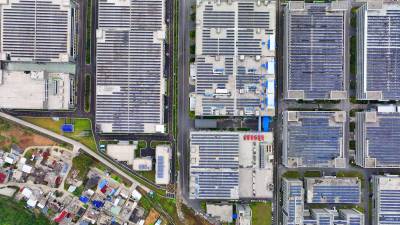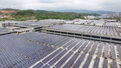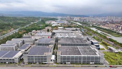 2024年10月19日,航拍十堰市房县纺织工业产业园屋顶光伏发电基地。