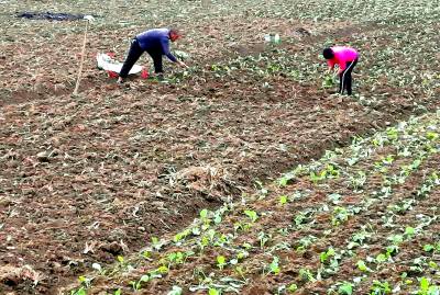 10月19日,竹山县宝丰镇下坝村村民正忙碌着移栽油菜。由于今年持续干旱,造成夏粮大面积减产。灾情发生后,宝丰镇村及相关部门准确统计受灾户和受灾面积,及时上报。党员干部深入农户田间地头,按照“以秋补夏、以经补粮、以菜补粮、以杂补主”的思路,指导、帮助群众抓紧时间抢收、抢种,将群众的损失降到最低。动员组织群众开展灾后生产自救,及时给群众提供秋播秋种技术指导,加强农作物田间管理,将灾害损失降到最低程度。