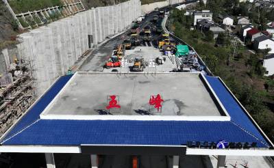 2024年10月22日,十堰市郧阳区五峰乡十巫北高速公路五峰互通正在铺设黑色混疑土路面。十巫北高速公路工程于2022年5月开工建设,全长34.9公里,总投资74.5亿元,预计11月底全面完工,年底实现通车。十巫北高速公路起于郧西县城区天河坪,连接福银高速公路,终点与十巫高速公路鲍溢段连接。十巫北高速(郧西至鲍峡段),是湖北省规划的“九纵五横三环”高速公路网中的“纵八”线的重要组成部分。