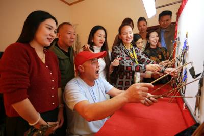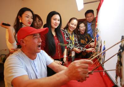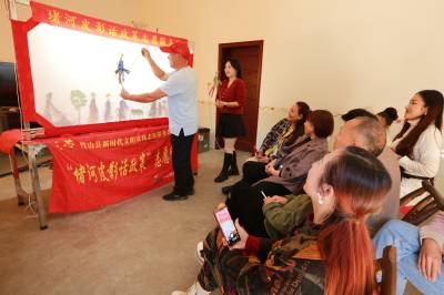 10月22日,湖北省竹山县非物质文化遗产堵河皮影戏传承人周承志在向“网红”大咖们讲授皮影知识和现场演唱。当日,该县网联会组织10名“网红”大咖专程来到兴茶村向周承志学习皮影艺术,并用抖音等平台宣传、传承皮影非遗文化。现已流传千年历史的堵河皮影戏是一种用民间打击乐、管弦乐伴奏,带有地方高腔韵味的民间戏曲剧种,2011年,堵河皮影被列入湖北省第二批非物质文化遗产代表性项目名录。十余年来,周承志带领竹坪皮影队常年活跃在鄂陕边陲两省四县。多次代表竹山皮影队在十堰、武汉和北京参加比赛或展演活动。