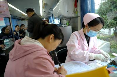 当日,在竹山县教育系统组织的2024年“无偿献血传爱心 为人师表显担当”义务献血活动中,麻家渡镇教职工积极响应号召,踊跃报名参与义务献血队伍。在医护人员的指导协助下,26位老师有序排队开展身份登记、测量血压、血型检验、采血等流程,大家主动撸起袖子,伸出手臂,热血带着体温和爱心注入血袋,涓滴之血汇聚生命力量,颗颗爱心传递师者大爱火种,点燃希望之光。(视界网 刘东 摄 )