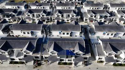 2024年10月23日,位于十堰市房县白鹤镇伏溪村堰河水库移民安居新家园,水泥路、森林停车场、太阳能路灯、微公园一应俱全。