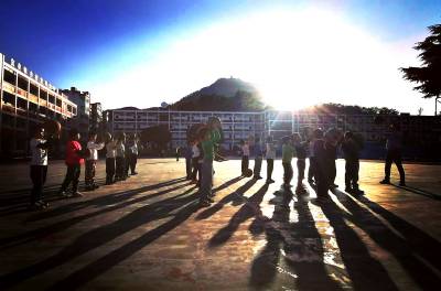 10月23日下午课后服务时间,在湖北省竹山县宝丰镇施洋小学操场上,参加篮球社团的学生个个拍着篮球,虎虎生威,享受阳光,享受运动,享受快乐。