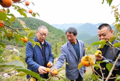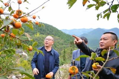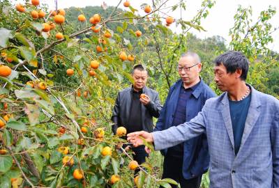 10月24日,巴东县官渡口财政所干部在指导蔡家村柿农果园管理,科技兴农。