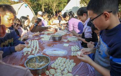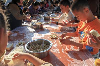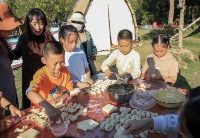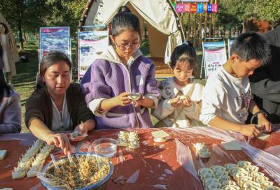 2024年11月2日,小学生包饺子 学生活技能活动走进竹溪县水坪镇“仙暇小镇”游乐区。家长带孩子在活动现场学“包饺子”,看谁包的又好又快的比赛。