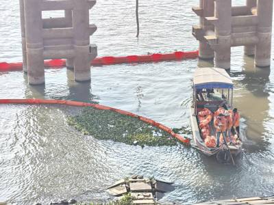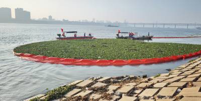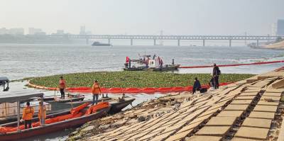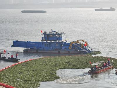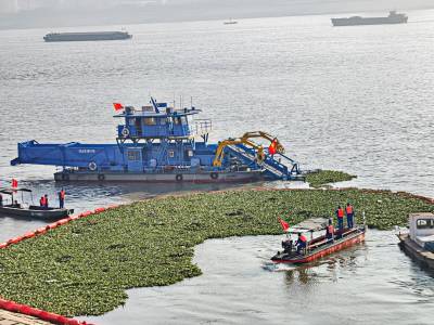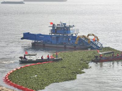 打捞泡泡草 拦截污染源 守护长江水