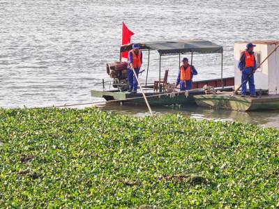 近段时间以来,每天都有野生物泡泡水草,由汉江漂流进入了长江汉江两江交汇的龙王庙长江口水域,11月10日上午,武汉城管委的两江水域市容环境卫生中心等组织安排打捞船和清漂队伍,在龙王庙水域全力守控,布设防线,做好水生植物及江面漂浮垃圾等拦截工作,让长江水域汉口段江面洁净美起来。积极参加长江汉江大保护行动,共同践行“绿水青山就是金山银山”的发展理念。