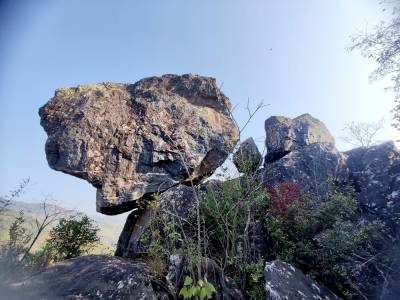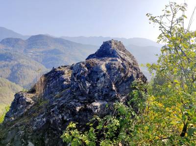 11 月 10 日,笔者在竹山县竹坪乡宽坪村东坡岭巅峰发现“一石三相”奇观。巨石似金鸡、高僧、将军,惊险万分又纹丝不动。附近还有“狮子观海石”等奇观,令人感叹大自然的神奇与鬼斧神工。(视界网张云朝摄)