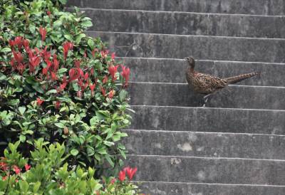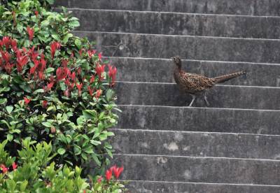 湖北巴东:野生七彩山鸡进城觅食 人与自然和谐共生