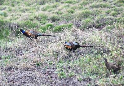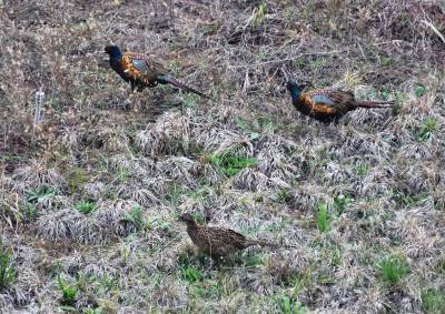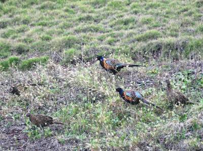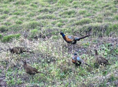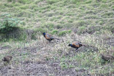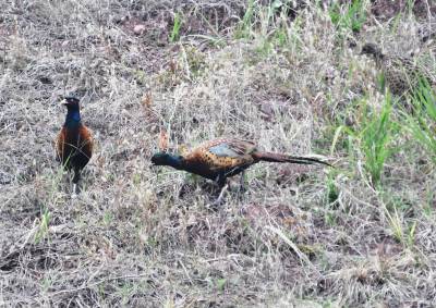 11月12日,在巴东县东瀼口镇乐乡社区一草坪内,五六只野生七彩山鸡在成群觅食,它们时而聚在一起,时而分头吃食,对过往车辆毫不惧怕。
