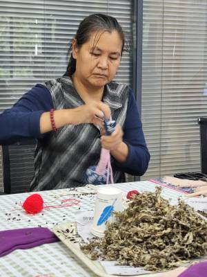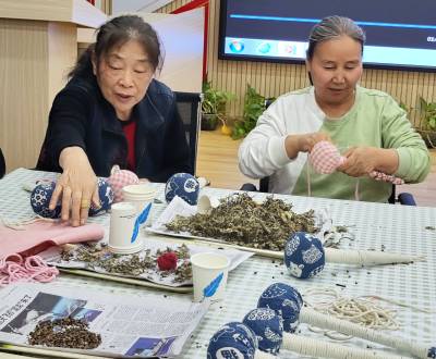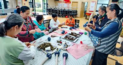 11月12日,武汉市江汉区唐家墩街道金家墩社区一场充满爱心与创意的手工 DIY 艾草荞麦锤活动,在社区多功能活动室热火朝天的展开。
