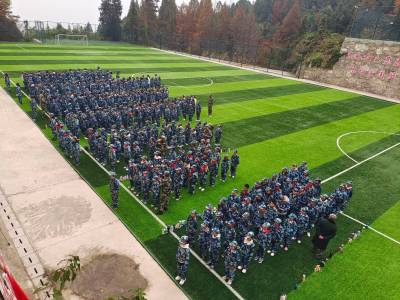 研学活动第一天,教官组织学生举行了开营仪式,授营旗,授队旗,领导致辞。开营仪式结束后,在教官们的带领下,同学们探秘了大薤山青少年国防教育研学基地,学习手语操《感恩的心》和《精忠报国》,传承红色基因,极大地增强了学生的感恩之心与爱国之情,树立了强烈的民族自豪感。