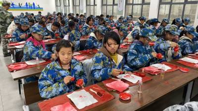 最后一天, 基地为同学们精心设计了多样化、独特性的实践课程,涵盖了拓印、茶艺、手工、生命健康、红色教育、国防教育、扎染等多项活动,同学们在老师的带领下,整齐有序地参与活动。