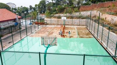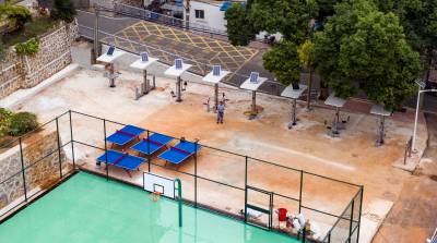 11月16日,位于嘉鱼县老县委大院的新建鱼岳镇球类运动中心施工正酣,国家标准笼式五人制足球场、排球场、羽毛球场、篮球场正在安施工程有条不紊进行,户外智能健康器材、乒乓球台已安装完毕。