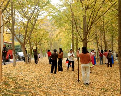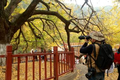 图1、图2:武汉的摄影师在古银杏国家森林公园摄影采风;