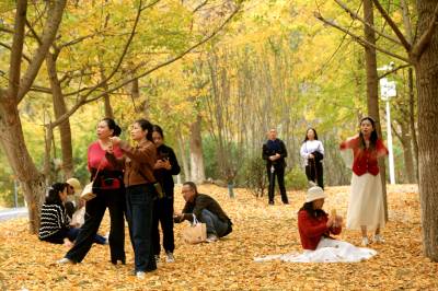 11月16日,武汉的摄影师在湖北省安陆市钱冲古银杏国家森林公园摄影采风。该古银杏森林公园地处大洪山边缘地带,是中国两大自然状态古银杏群落之一,是为国设立的“大洪山银杏资源自然保护区”的重点地域之一。公园占地60平方公里,有千年以上古银杏48株,500年以上1486株,100年以上4368株。园内树形各异,有夫妻树、情侣树、子孙树、母子树等。眼下,数千株古银杏金黄灿烂,进入最佳观赏时节,来自全国各地的游客纷纷来此打卡赏景。