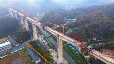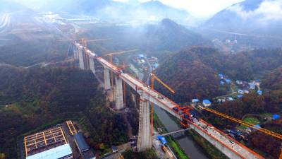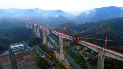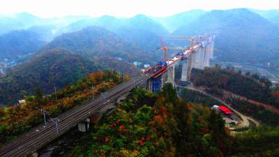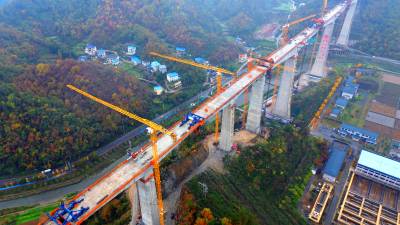 花湖国际机场铁路联络线首个连续梁0#块顺利浇筑(客户端采稿)