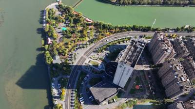 2024年11月20日,十堰市房县马栏河与大河交汇处的半岛湾河流湿地公园,流水潺潺,景观树木五彩斑斓、美不胜收。