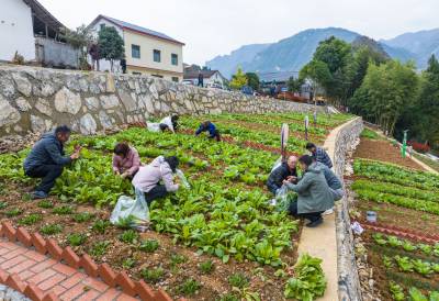 当日是农历小雪节气,湖北省宜昌市秭归县杨林桥镇三渡河村迎来一拨来自城里的特殊客人,他(她)们在白果树村落认领“共享菜园”,享受山村风情、采收蔬菜的乐趣。