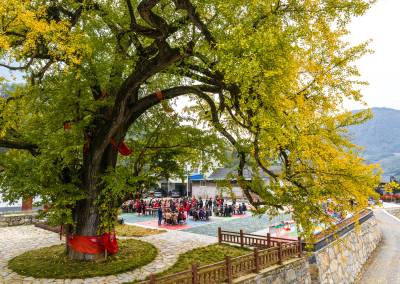 白果树村落是当地的第二批共同缔造试点村落。自共同缔造活动开展以来,村落群众共同确定了利用本村农林资源优势发展乡村旅游的总体方向,建设“共享菜园”探索乡村旅游发展的路径。在村落乡贤能人的发动下,村落群众共同出地,由村“两委”将群众出让的3亩连片土地改造成以24节气命名的24块“共享菜园”,游客可以通过认养一块菜园,以自种或托管的方式,与村落群众“园丁”开展结对联系,从播种、耕耘到收获,沉浸式体验农耕文化,享受纯天然无公害的绿色果蔬,品尝地道的农家饭。