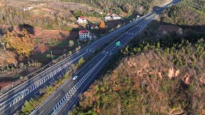 2024年11月22日,十堰市房县军店镇小峪村境内高速公路通达全境,乡村公路连通光伏发电、种植产业基地。