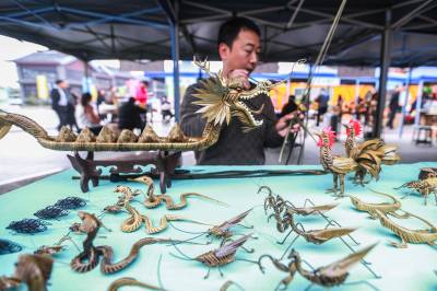 当日,湖北省宜昌市秭归县第二届民间文化艺术周的非遗集市在南门广场精彩开市,吸引不少游客前来观赏非遗技艺展演、购买非遗文创产品。据悉,参加本届民间文化艺术周主题活动的城乡居民近3000人,参评和展演的群众文艺作品150多件,群众书法、美术、摄影和非遗生产性保护作品860多件。包括民间文化艺术、非遗展示展演、数字文化、楚服、民间文化艺术嘉年华体验、文物鉴宝大会等多种形式。据该县非遗中心主任、文化馆馆长梅俊明介绍,参评及展演作品中百分之八十以上是根据各级公布的各类非遗名录相关元素进行原创。