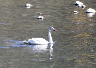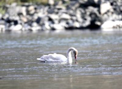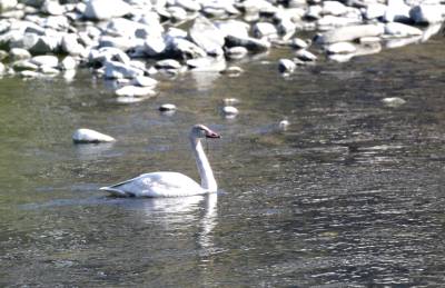 经竹山县林业局野保站工作人员鉴定,此鸟为国家二级重点保护动物小天鹅。成鸟遍体雪白,仅头顶至枕略沾淡棕黄色。同时也属于过境鸟,它们主要栖息于面积较大而富有水生植物的河流、湖泊,以水生植物为食,偶尔吃水生无脊椎动物。它们成小群活动,性情机警。它们通常于每年10月南迁越冬,次年3月向北迁繁殖。