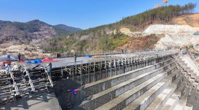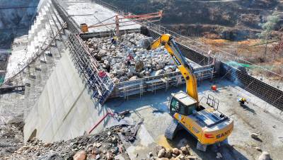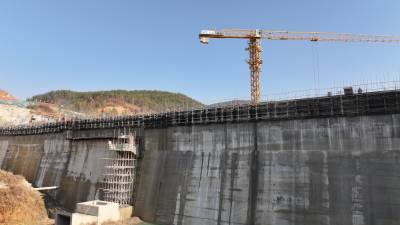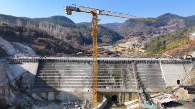 2025年1月5日,十堰市房县堰河水库大坝施工现场,工人们正在开仓浇筑混凝土,为新年开好局、起好步加油干。