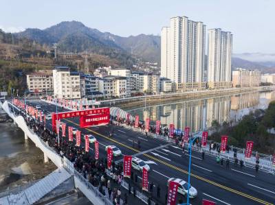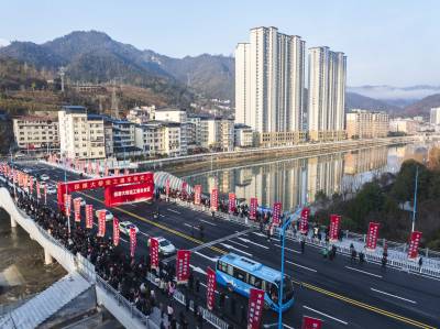 当日,保康大桥建成通车。保康大桥新建是保康县2024年重要的交通基础设施项目,也是保康县人民期盼已久的重要民生工程。新建桥梁全长166米,桥面总宽31米,为双向6车道,桥两边设非机动车道和人行道,各2.5米宽。同时,对大桥两头河东南关街、清溪路、河西绕城路等平面交叉路口进行拓展改造。保康大桥建成通车后,将大幅提高保康县城交通通行能力和交通效率,缓解区域交通拥堵压力,改善居民出行条件。