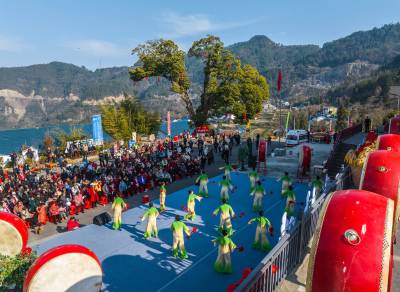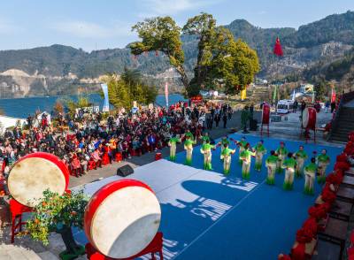 当日, 三峡库区湖北省宜昌市秭归县沙镇溪镇长春村的村民和游客齐聚大青树“六小”村落文化广场,炸煎粿、打糍粑、磨豆腐、舞龙狮、购年货、看村晚,一派热闹喜庆的迎新春氛围。 据了解,“知音湖北 四季村晚”2024年全国冬季“村晚”秭归县示范展示活动在该村举行。本次“村晚”示范展示活动由湖北省、宜昌市群众艺术馆、非物质文化遗产保护中心指导,由秭归县文化和旅游局、沙镇溪镇人民政府主办,秭归县文化馆、秭归县非物质文化遗产保护中心承办。活动依托沙镇溪镇当地丰厚的农文旅资源和群众文化、非遗人才队伍,按照“群众演、演群众、演给群众看”的筹办理念,以实现基层文化共建共享、自给自足为目标,融合“文化展演、观光休闲、民俗体验、美食体验、产品展销”功能于一体,进一步激活基层文化潜能,赋能乡村振兴,推动秭归“村晚”成为承载乡愁记忆、提振乡村经济、培育乡风文明的重要载体,助力秭归山水的“高颜值”、文化的“高品质”转化为乡村产业发展的“高价值”。