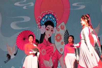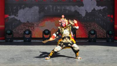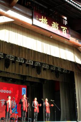 2025年1月12日,十堰市房县西关印象百戏楼,该县窑淮镇干部群众表演的诗朗诵、三句半、川剧变脸等民俗文艺节目将“好物在房县,全民赶大集”乡村年货节活动推向高潮。