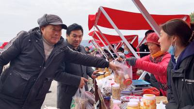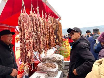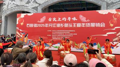 丰收鼓敲响,喜庆歌嘹亮。元月18日,丹江口市石鼓镇在太极峡景区门前广场举办2025年“舌尖上的年味”第二届年货节,来自周边乡镇村民群众摊点前的葛根份、野山药、地皮菜、干芝麻叶、干菜、野生蜂蜜、手工香肠、腌腊肉、猪牛羊鸡鸭鹅鱼等地道土特产和生鲜吸引大批市民前来选购;书法家协会会员挥毫泼墨书写春联送祝福,受到村民群众的追捧;镇政府、市文联及城乡学校师生载歌载舞、民乐喧天,为年货节助兴添色。年货节,年味浓,省内外近万名市民群众闻讯前来游玩,选购年货,共同感受鄂豫两省口子镇、丹江口库畔的年味与热情。