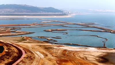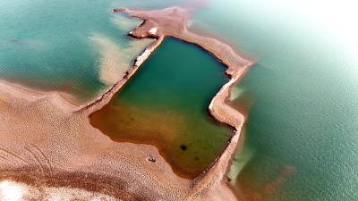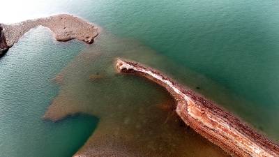近日,南水北调中线工程水源地汉江丹江口水库湖北省十堰市郧阳区段水位持续下降,郧阳湖湿地大片露出水面,初春风景如画。