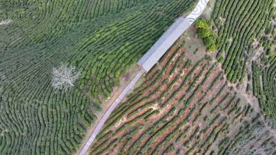 2025年3月6日,十堰市房县窑淮镇窑场村生态茶园基地,茶树吐翠,全镇3.2万亩茶园又遇春茶采收好年景。