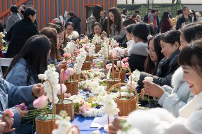 湖北枝江:春来樱花开 游客赏花忙