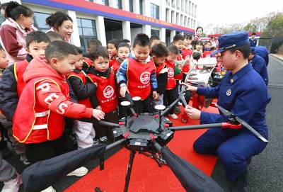 此外,孩子们在消防员的指导下学习消防服的穿戴和灭火器的使用,观看体验无人机空投救生圈、火灾逃生、体验乘坐消防车等项目,让孩子们实实在在过了一把“消防员”瘾。“消防车这个‘变形金刚’实在太强大了。消防员叔叔真是太厉害了!上大后,我们也要当消防员!”孩子们既兴奋又感慨。 (视界网 朱本双 摄)